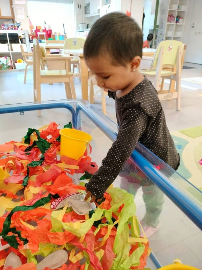 In the previous weeks, children have been settling with their new class and friends, and they have loved exploring every corner of their class and the daycare. Throughout the weeks they have been immersed in several sensory activities such as beads, water play, painting and sensory table. Alongside these sensory activities, we had safety week. During this week Puffins got to learn about how to evacuate from a fire, what we can do and we can’t do when we see fire, as well as experiencing to be a firefighter with an indoors gym teachers created where they could jump, crawl and extinguish a fire; ending the week with a fire drill in which they behaved very well and followed teachers’ instructions.