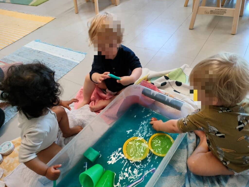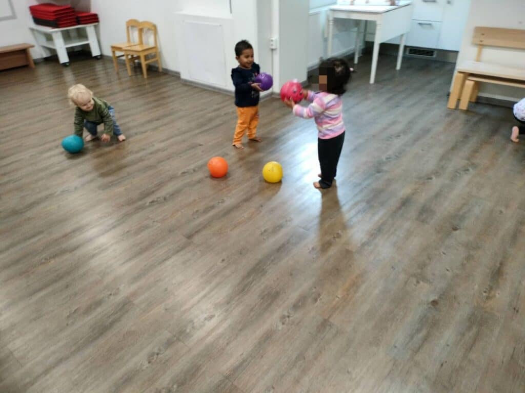 Although at the beginning these little Puffins were very shy just wanting to have teachers’ comfort and to be by their side, they have been taking an adventure in exploring what we can call their social skills. Of course they are very young to now about terms such as friendship, emotions and feelings, but our hearts melt (and it is so cute too) when we see them seeking for interaction and giving hugs with other children. Moreover, one day we had the chance to visit the upstairs yard and Puffins enjoyed playing with Penguins and Parrots. Last week, teachers decided to go on an adventure with Puffins and took them to the nearby forest and children couldn’t enjoyed more. They were amazed by all the trees, bushes and big rocks they saw. This trip was all about laughs and happiness and even they got to practice their gross motor skills by running with teachers as well as climbing and jumping from big rocks. It was such a great trip!! But this wasn’t the only adventure, we went for the first time to the gym and children loved the new space and explored it around by running, playing with balls as well as the sensory mats. Finally, we had parents coffee event where parents came to visit their children and they enjoyed having snack together as well as playing for some time.